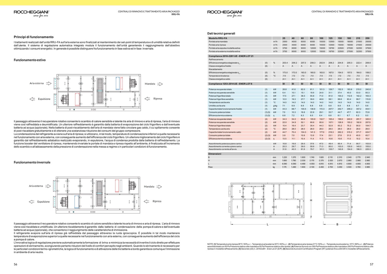 assorbita totale con 50 Pa Pressione statica utile mandata e 50 Pa Pressione statica utile ripresa; (4) Potenza Sonora con 300 Pa Pressione statica utile mandata e 250 Pa Pressione statica utile