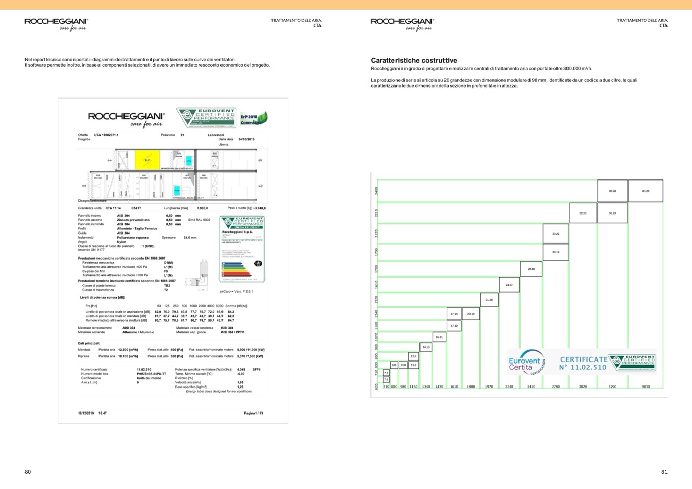 Nel report tecnico sono riportati i diagrammi dei trattamenti e il punto di lavoro sulle curve dei ventilatori.