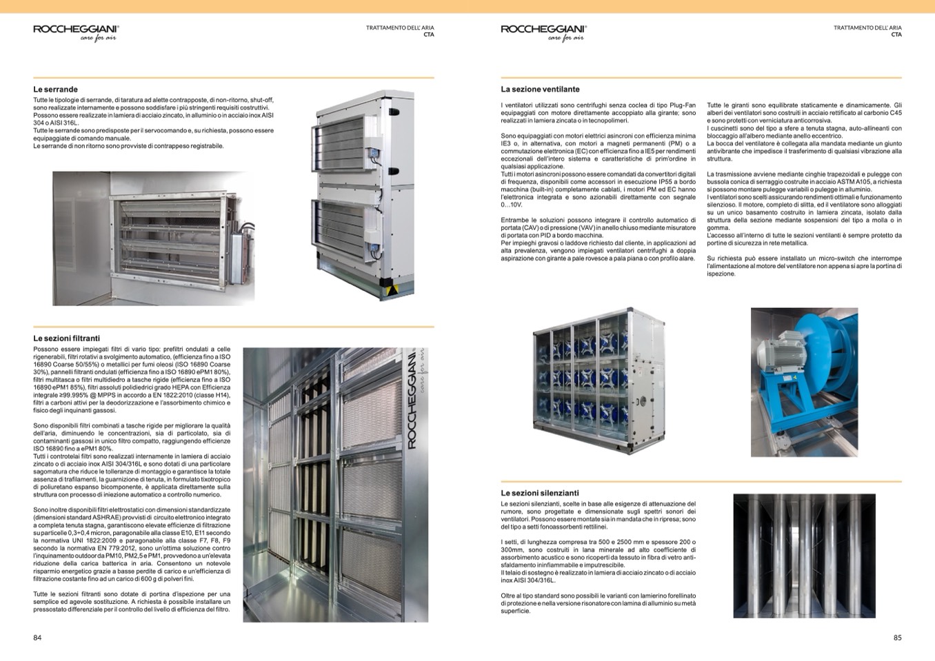 30%), pannelli filtranti ondulati (efficienza fino a ISO 16890 ePM1 80%),