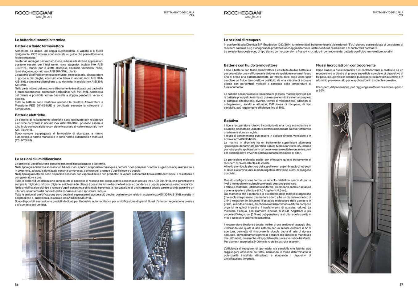 recupero calore (HRS). Per ogni unità prodotta Roccheggiani fornisce i dati specifici di rendimento e di conformità normativa.