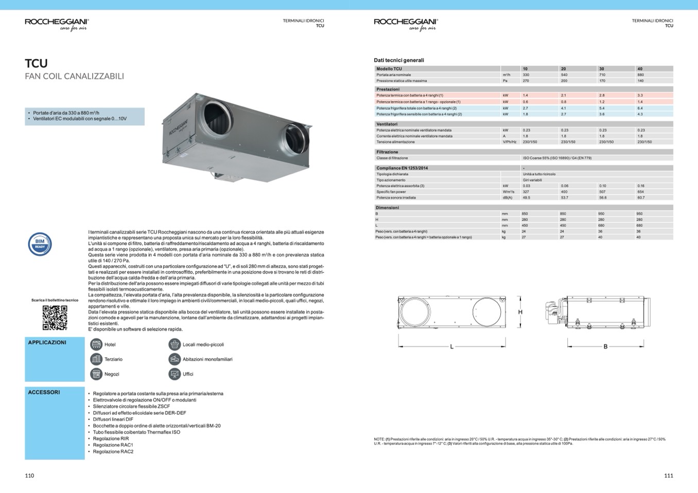 U.R. - temperatura acqua in ingresso 7°-12° C; (3) Valori riferiti alla configurazione di base, alla pressione statica utile di 100Pa.