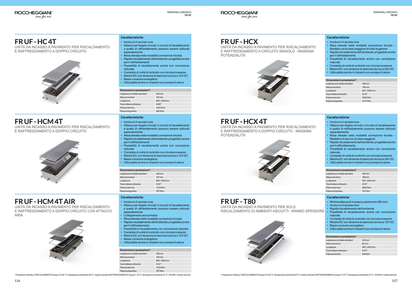 * Prestazioni riferite a: RISCALDAMENTO acqua 75-65 °C / temperatura ambiente 20°C / media velocità; RAFFREDDAMENTO acqua 7-12°C / temperatura ambiente 27°C - 50%RH / media velocità