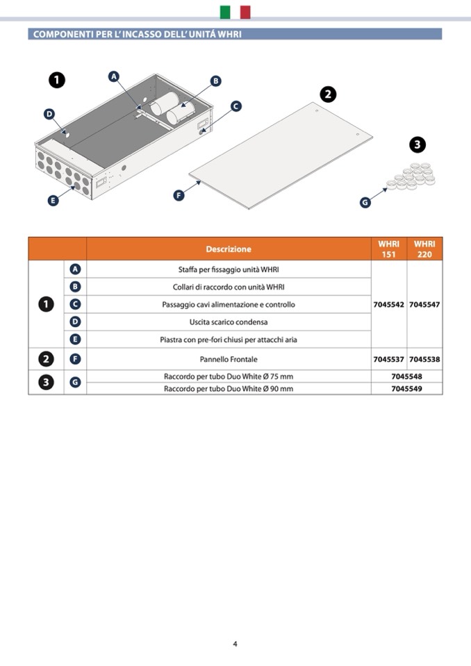 COMPONENTI PER L’ INCASSO DELL’ UNITÁ WHR