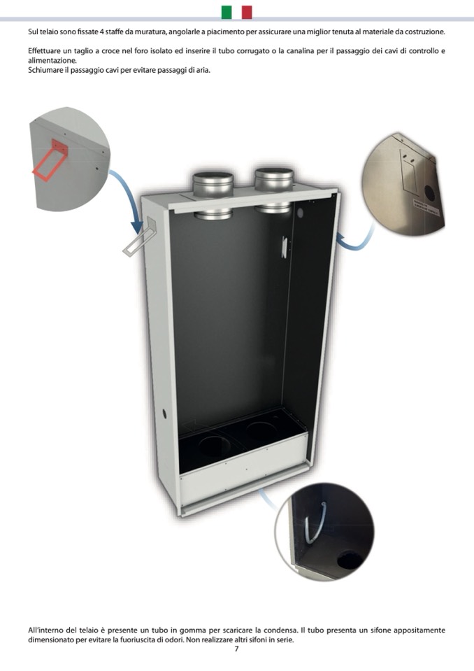 All’interno del telaio è presente un tubo in gomma per scaricare la condensa. Il tubo presenta un sifone appositamente