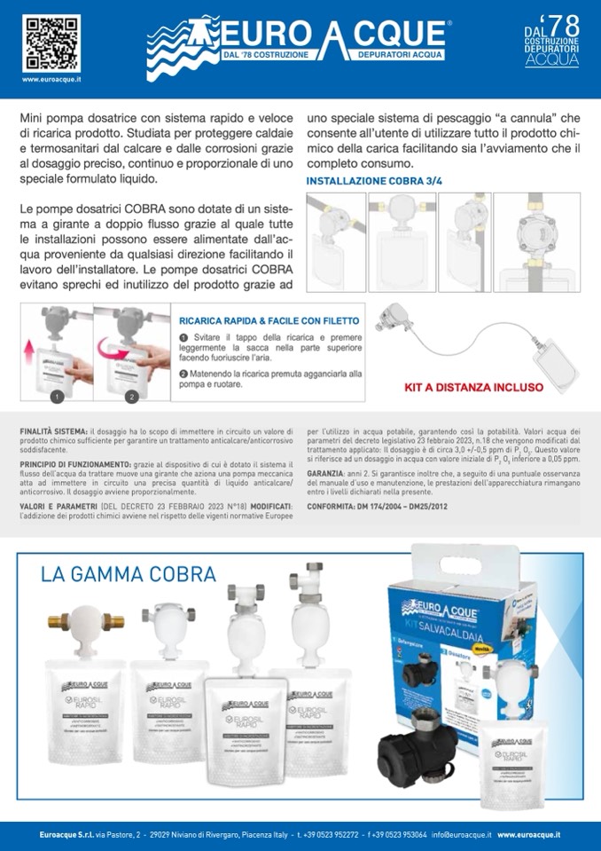 Euroacque S.r.l. via Pastore, 2 - 29029 Niviano di Rivergaro, Piacenza Italy - t. +39 0523 952272 - f +39 0523 953064 info@euroacque.it www.euroacque.it