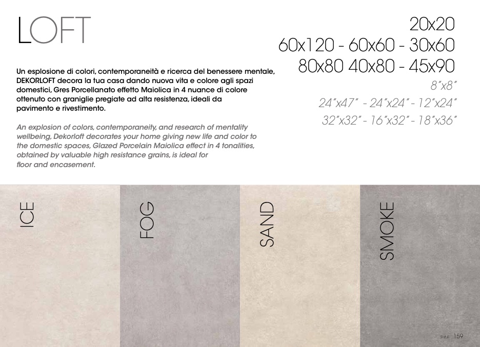 the domestic spaces, Glazed Porcelain Maiolica effect in 4 tonalities,