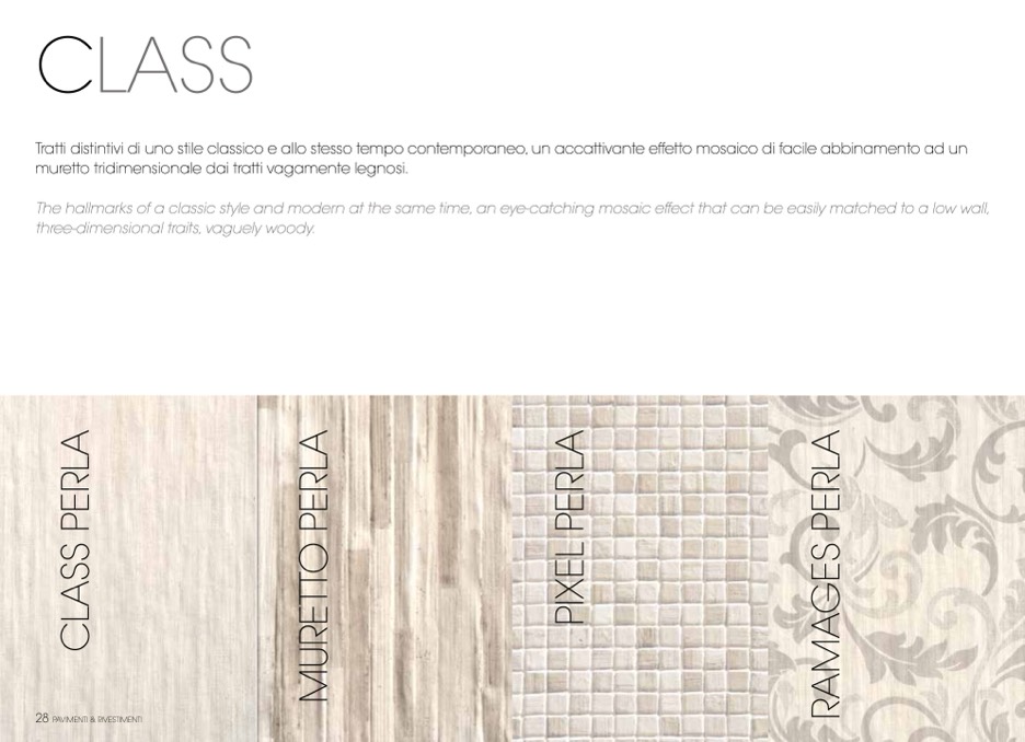 Tratti distintivi di uno stile classico e allo stesso tempo contemporaneo, un accattivante effetto mosaico di facile abbinamento ad un