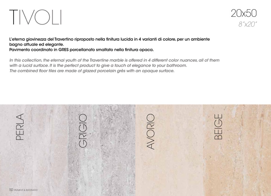 In this collection, the eternal youth of the Travertine marble is offered in 4 different color nuances, all of them