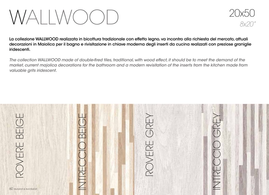 La collezione WALLWOOD realizzata in bicottura tradizionale con effetto legno, va incontro alla richiesta del mercato, attuali