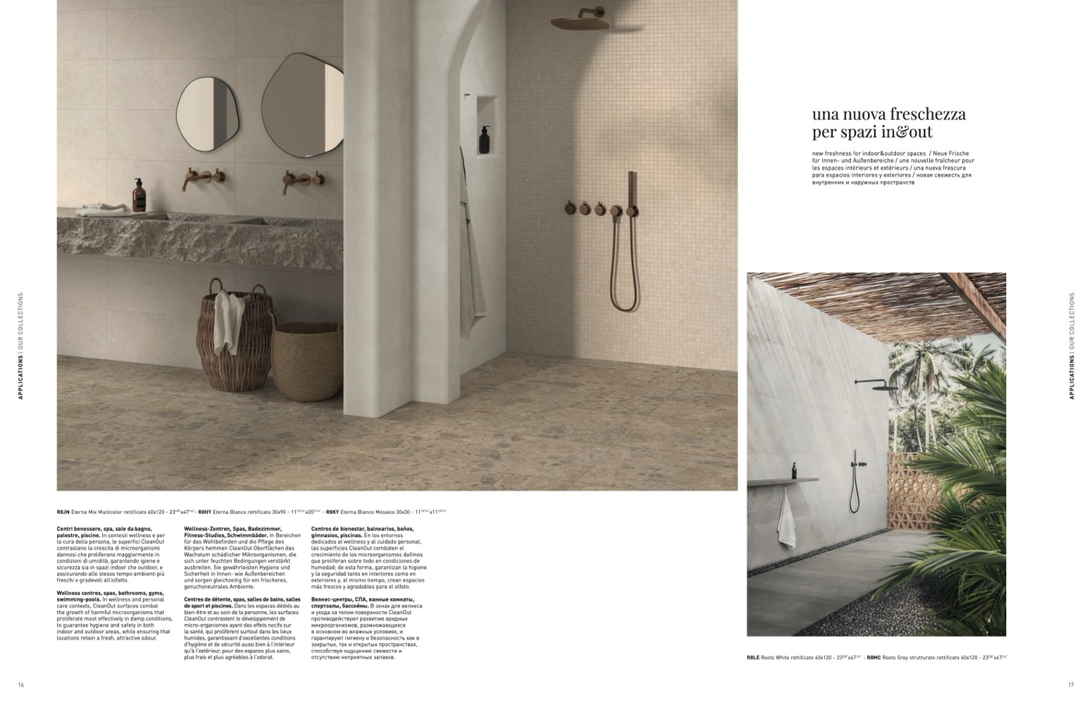 Wellness centres, spas, bathrooms, gyms,