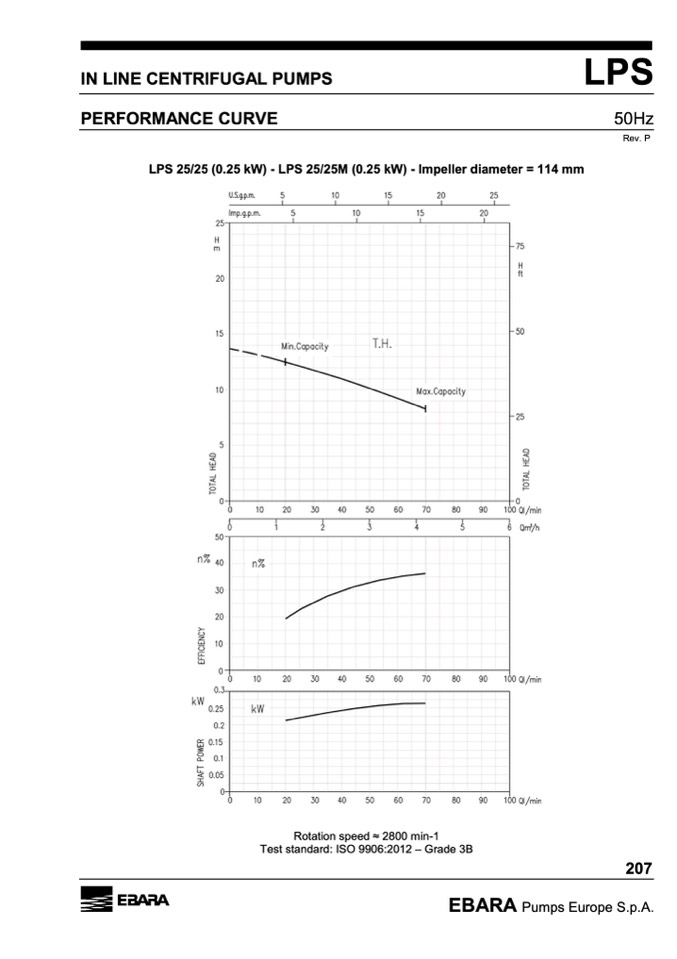 LPS 25/25 (0.25 kW) - LPS 25/25M (0.25 kW) - Impeller diameter = 114 mm