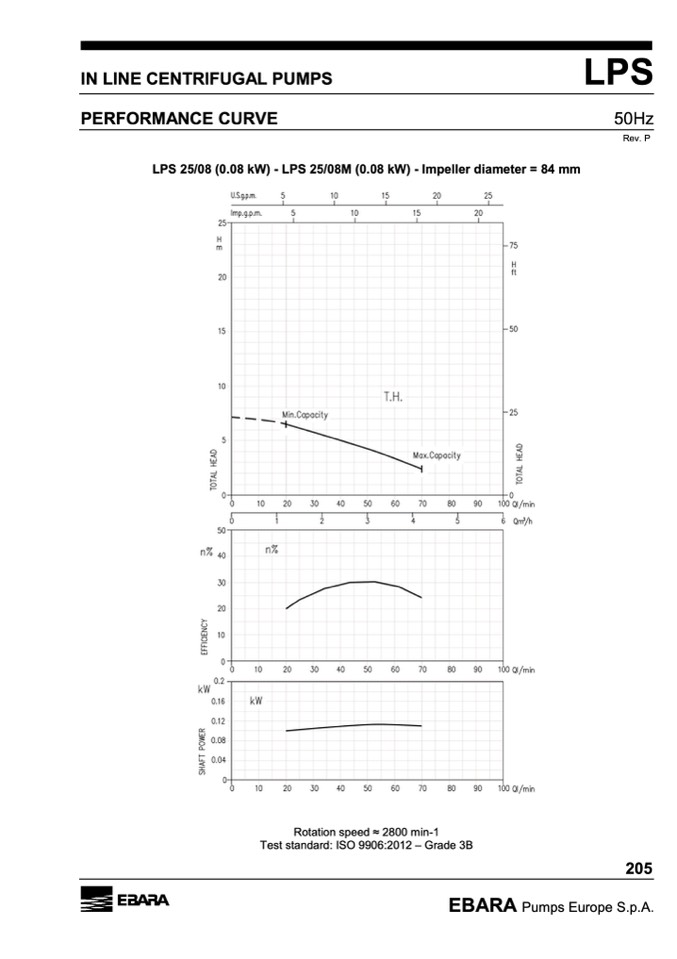 LPS 25/08 (0.08 kW) - LPS 25/08M (0.08 kW) - Impeller diameter = 84 mm