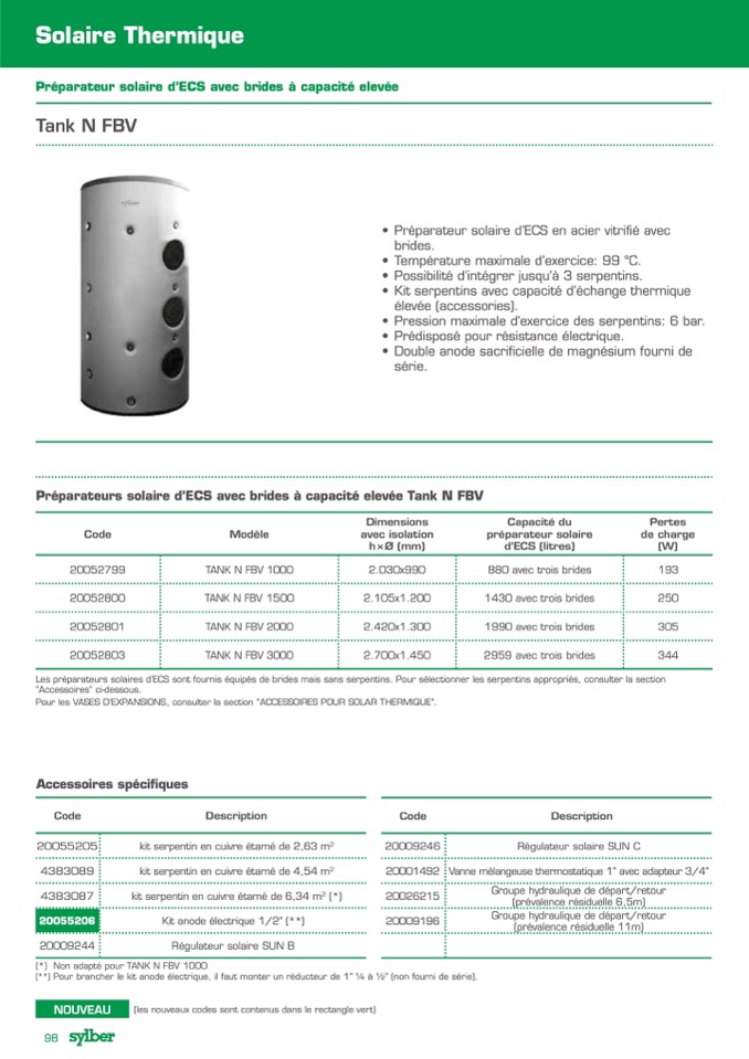 Préparateurs solaire d’ECS avec brides à capacité elevée Tank N FBV