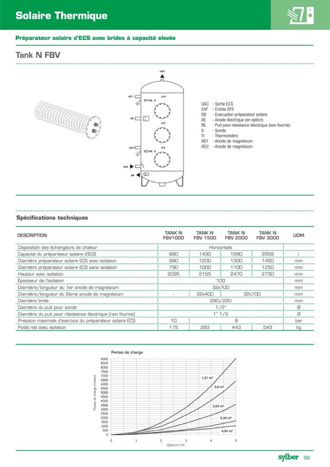 Préparateur solaire d’ECS avec brides à capacité elevée