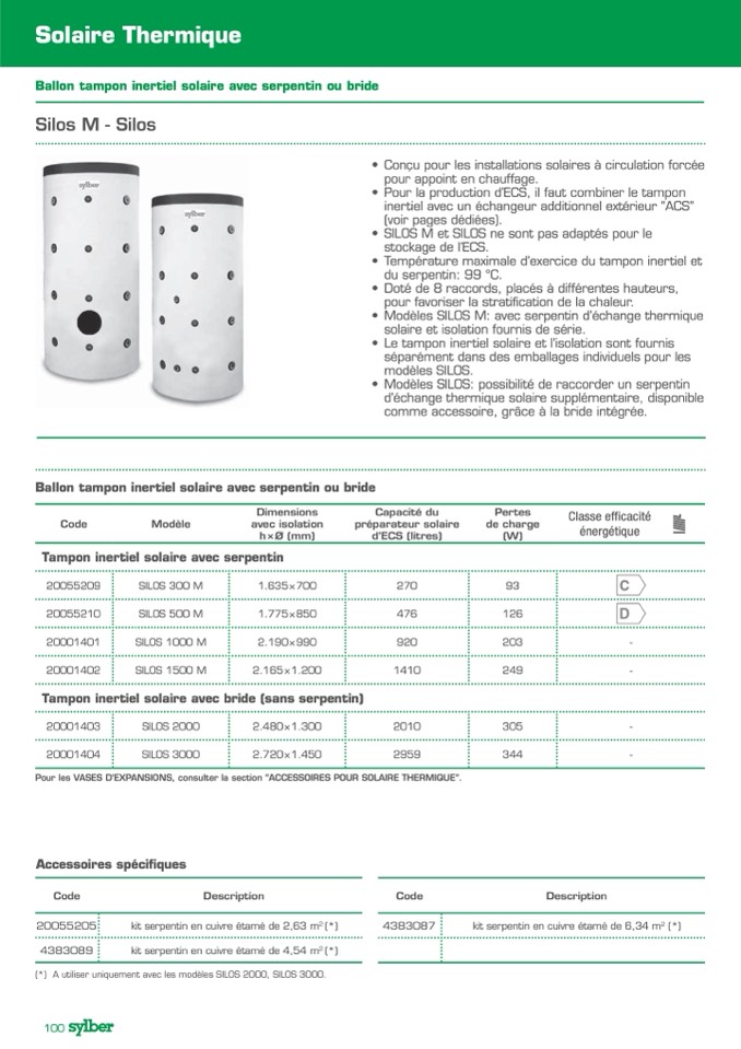 Modèles SILOS M: avec serpentin d’échange thermique