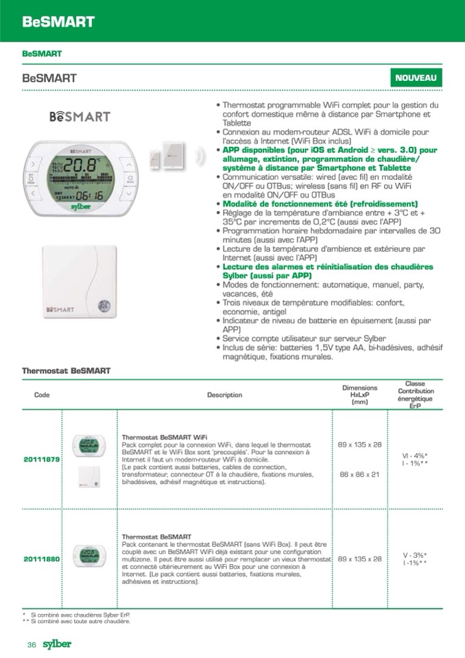 * Si combiné avec chaudières Sylber ErP.
