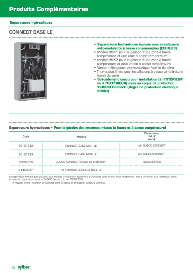 Le separateur hydrauliques peuvent être installés à l’extérieur seulement si incastrés dans le mur. Pour l’installation, soit à l’intérieur qu’à l’extérieur, il faut