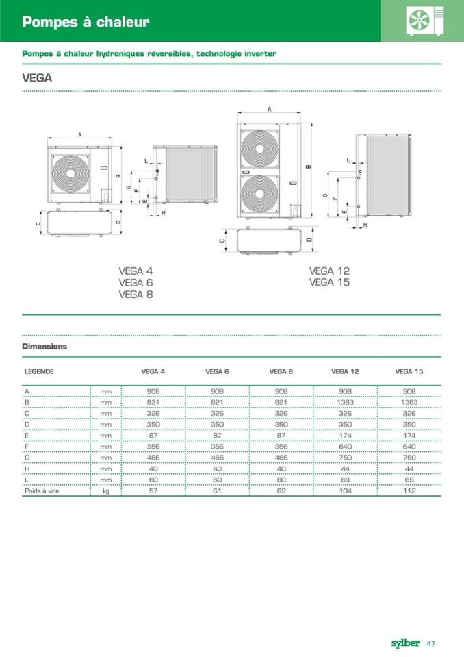 Pompes à chaleur hydroniques réversibles, technologie inverter
