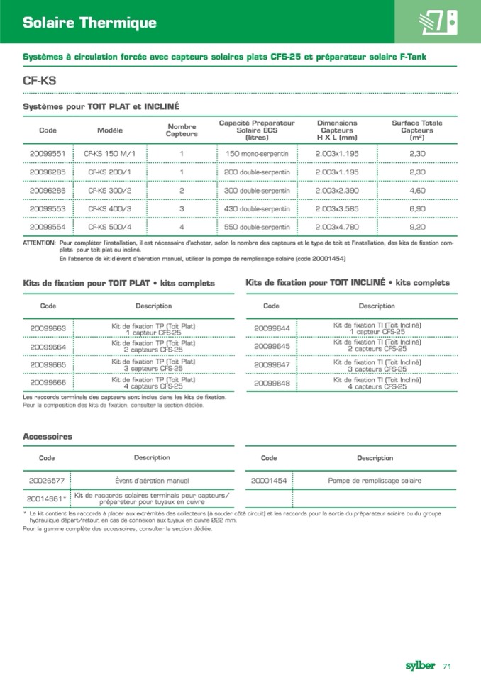 Systèmes à circulation forcée avec capteurs solaires plats CFS-25 et préparateur solaire F-Tank