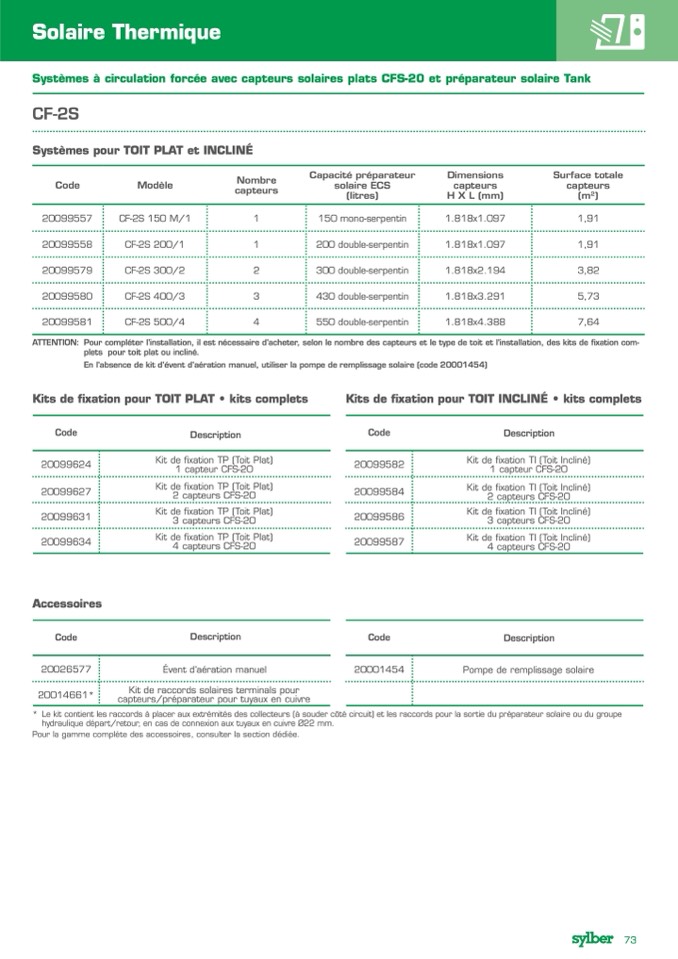 Systèmes à circulation forcée avec capteurs solaires plats CFS-20 et préparateur solaire Tank