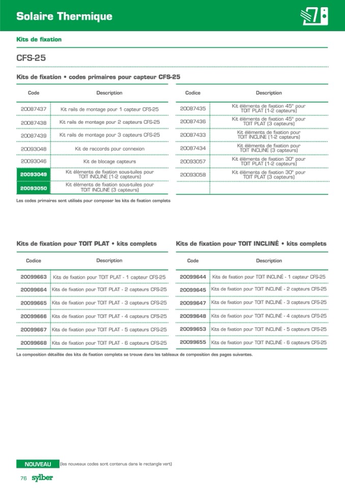 Les codes primaires sont utilisés pour composer les kits de fixation complets