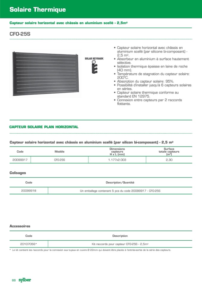 CAPTEUR SOLAIRE PLAN HORIZONTAL