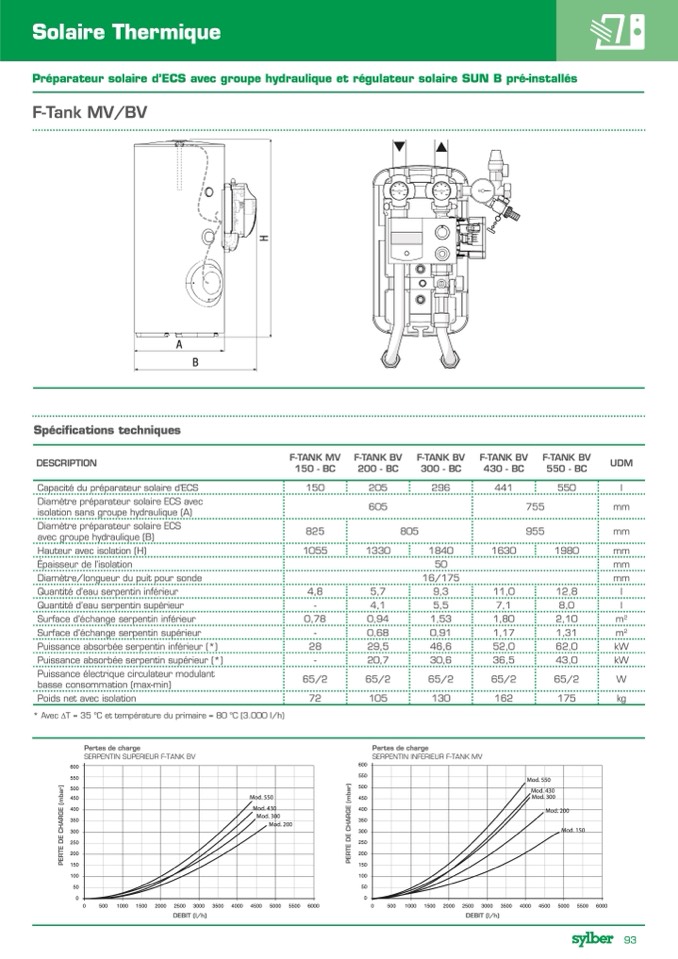 Préparateur solaire d’ECS avec groupe hydraulique et régulateur solaire SUN B pré-installés