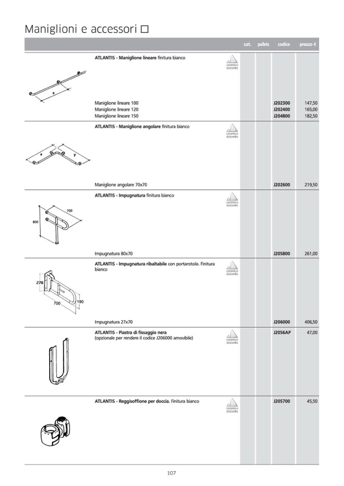 ATLANTIS - Impugnatura ribaltabile con portarotolo. Finitura