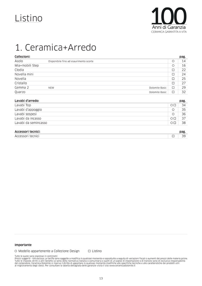 al miglioramento degli stessi. Per consultare la tabella dettagliata delle garanzie visita il sito www.ceramicadolomite.it
