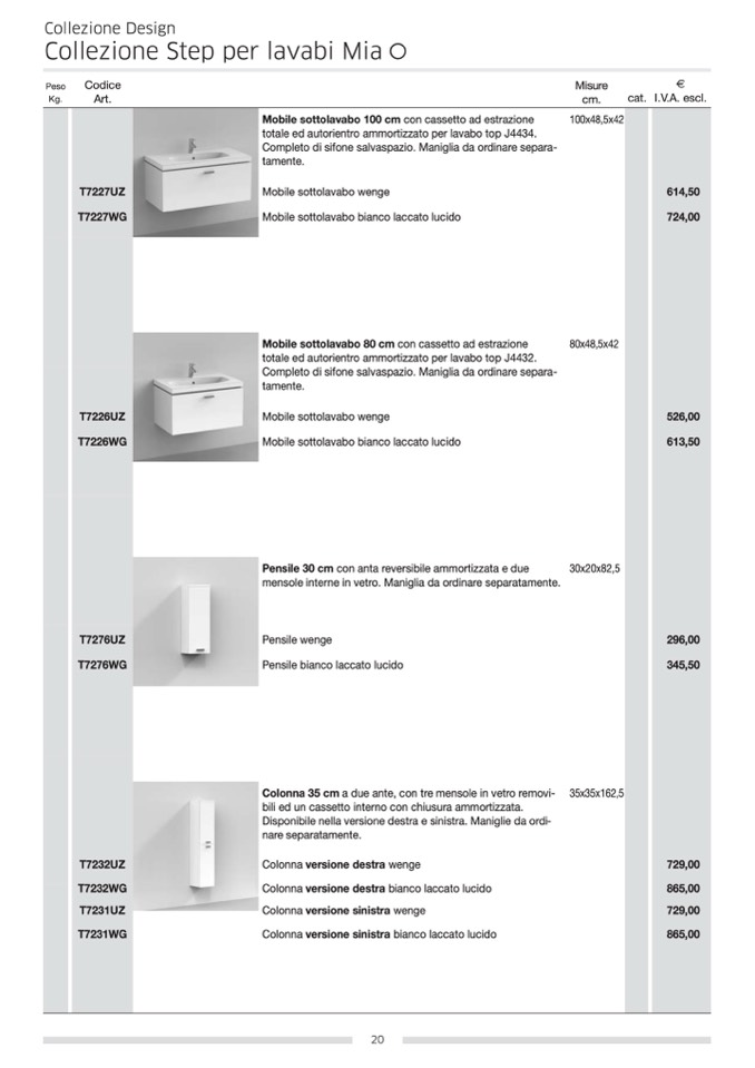 Collezione Step per lavabi Mia X