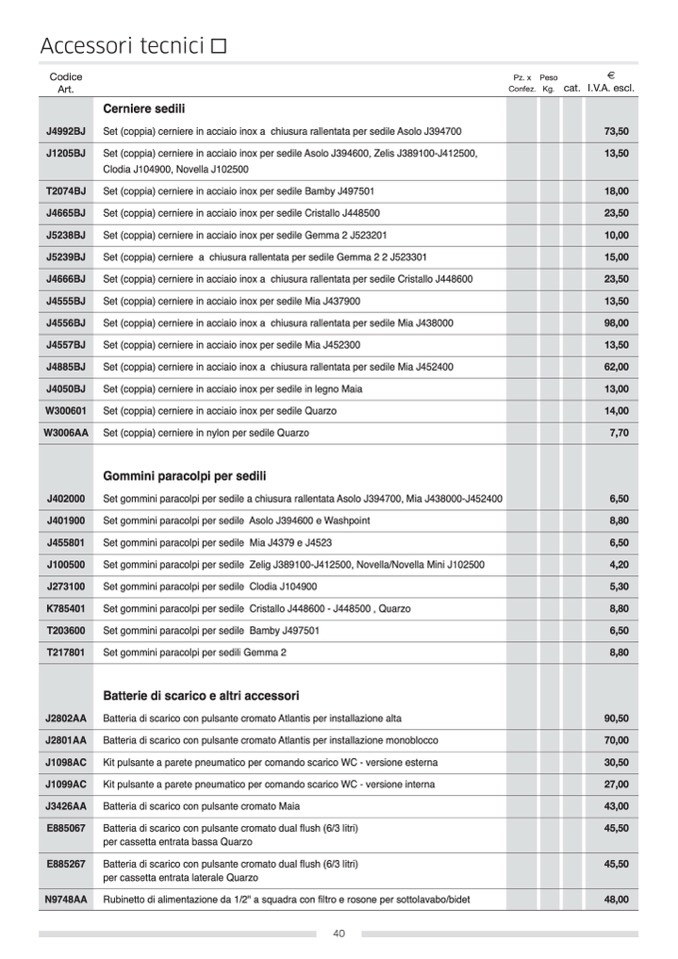 Set gommini paracolpi per sedile a chiusura rallentata Asolo J394700, Mia J438000-J452400