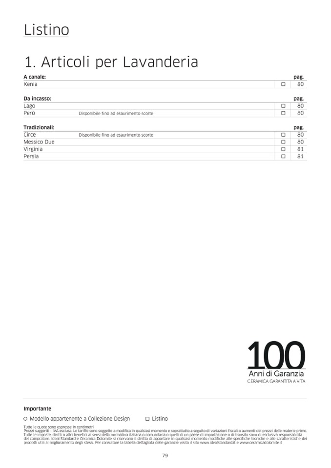 prodotti utili al miglioramento degli stessi. Per consultare la tabella dettagliata delle garanzie visita il sito www.idealstandard.it e www.ceramicadolomite.it