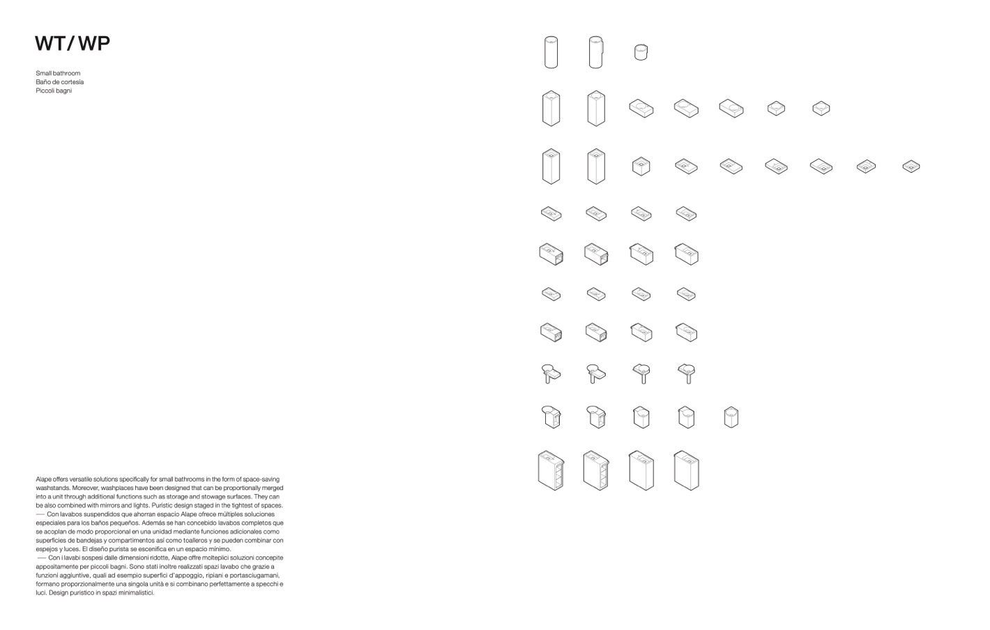 especiales para los baños pequeños. Además se han concebido lavabos completos que