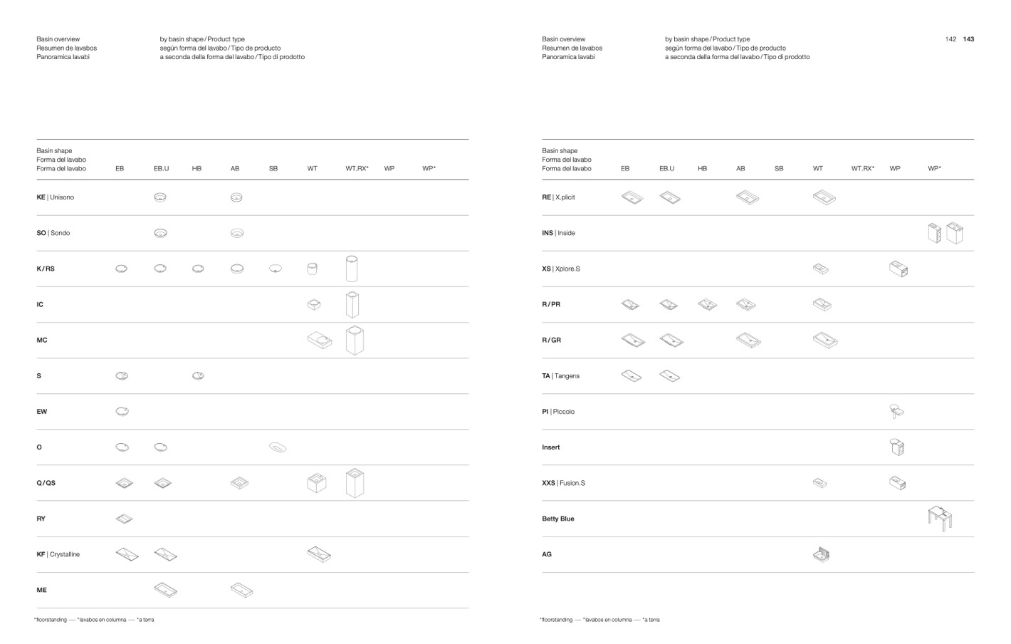by basin shape / Product type