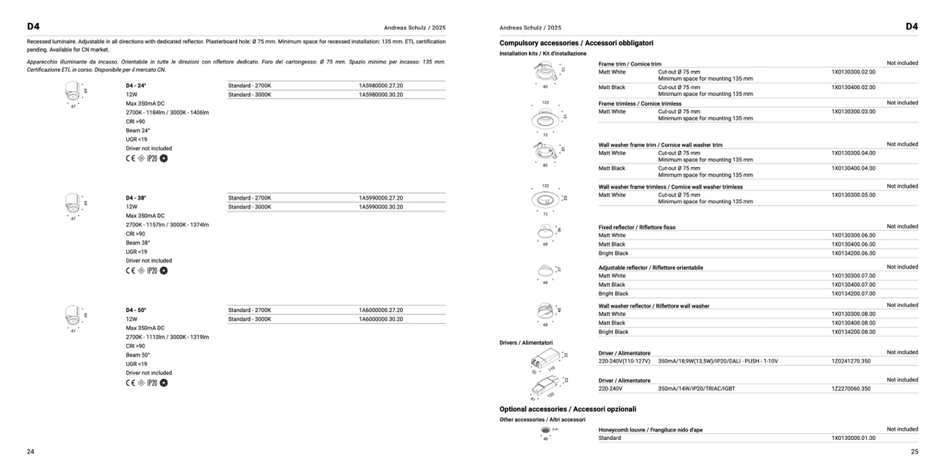 flector. Plasterboard hole: Ø 75 mm. Minimum space for recessed installation: 135 mm. ETL certi