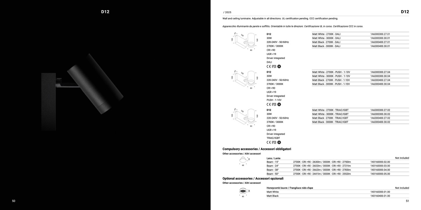 fitto. Orientabile in tutte le direzioni. Certificazione UL in corso. Certificazione CCC in corso.