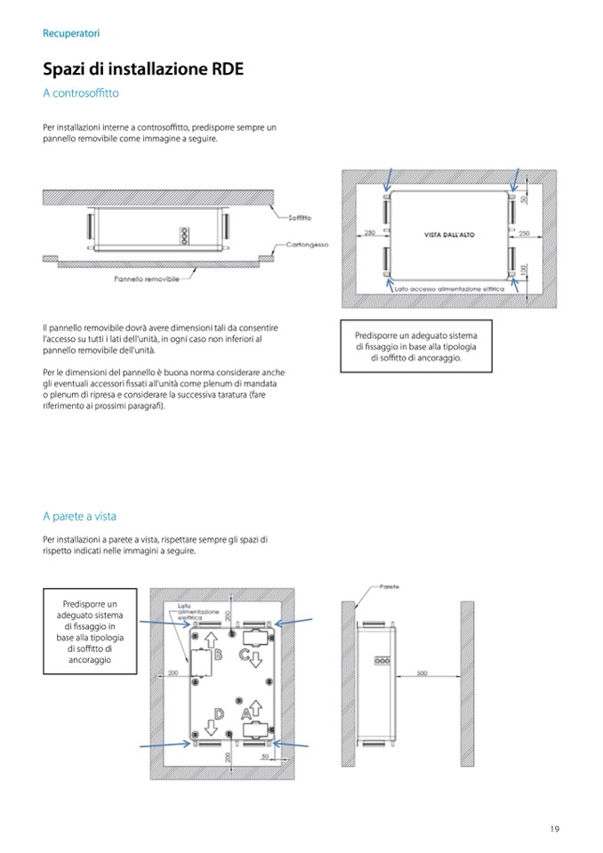 Per installazioni interne a controsoffitto, predisporre sempre un pannello removibile come immagine a seguire.