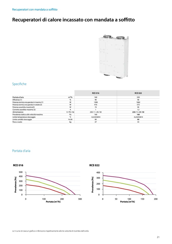 Le 3 curve di ciascun grafico si riferiscono rispettivamente alle tre velocità di ricambio dell'unità.