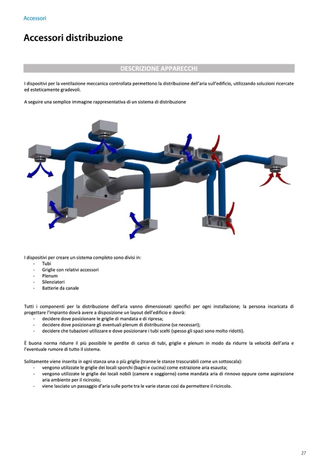 Tutti i componenti per la distribuzione dell’aria vanno dimensionati specifici per ogni installazione; la persona incaricata di