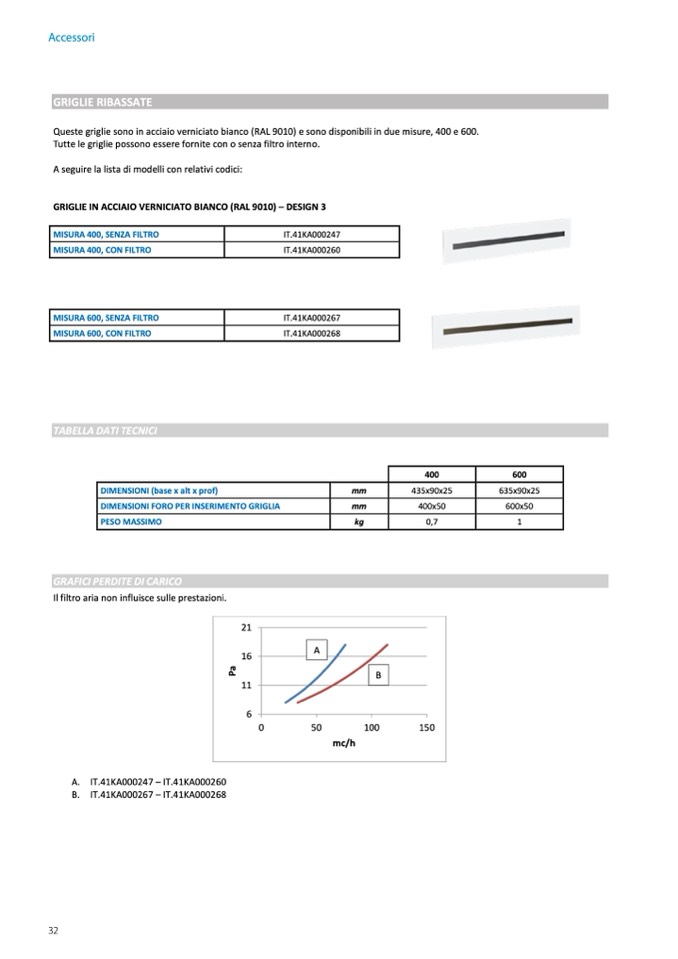 Queste griglie sono in acciaio verniciato bianco (RAL 9010) e sono disponibili in due misure, 400 e 600.