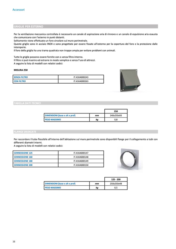 Tutte le griglie possono essere fornite con o senza filtro interno.
