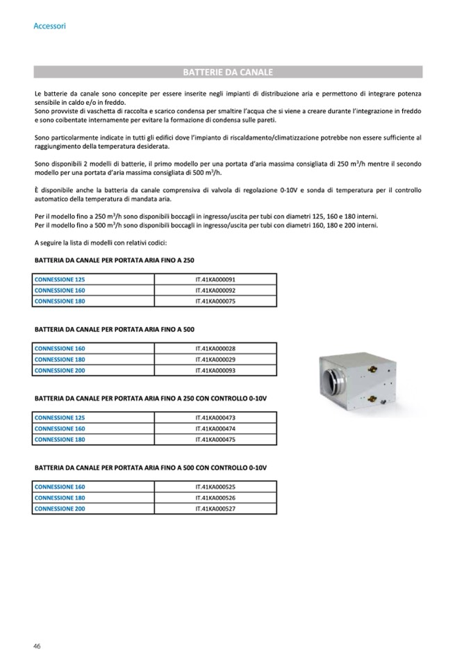 BATTERIA DA CANALE PER PORTATA ARIA FINO A 250