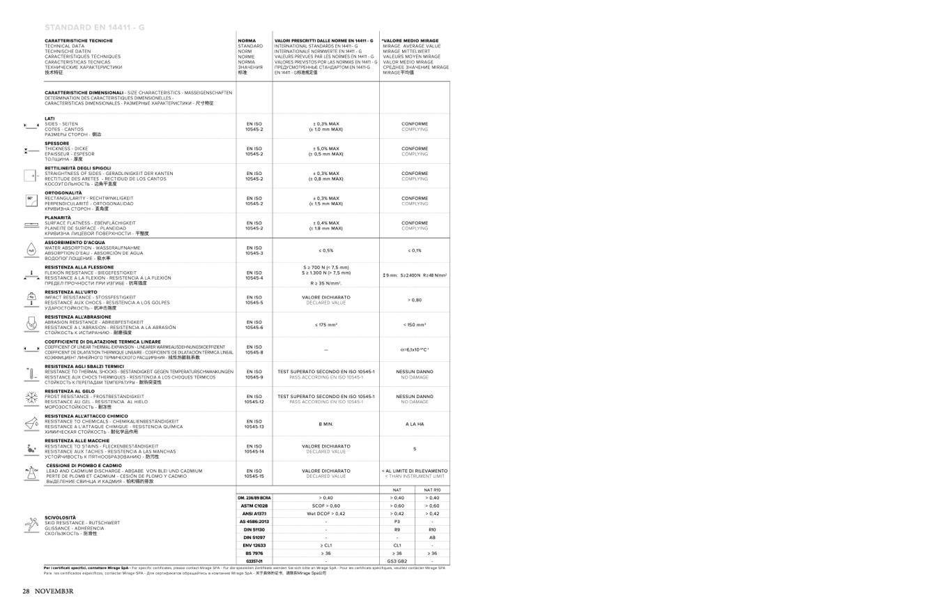 VALORI PRESCRITTI DALLE NORME EN 14411 - G