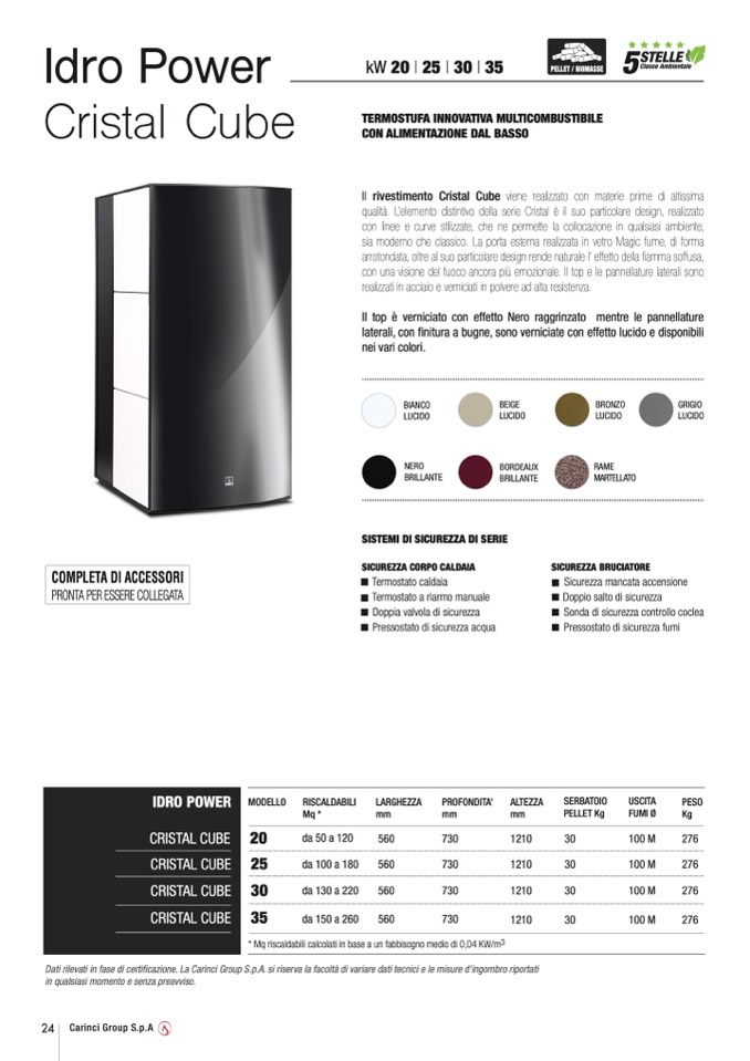 Dati rilevati in fase di certificazione. La Carinci Group S.p.A. si riserva la facoltà di variare dati tecnici e le misure d’ingombro riportati
