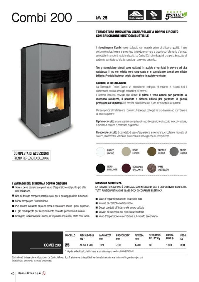La Termostufa Carinci Combi va direttamente collegata all’impianto in quanto tutti i
