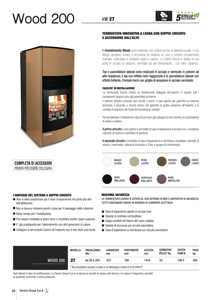 La Termostufa Carinci Combi va direttamente collegata all’impianto in quanto tutti i