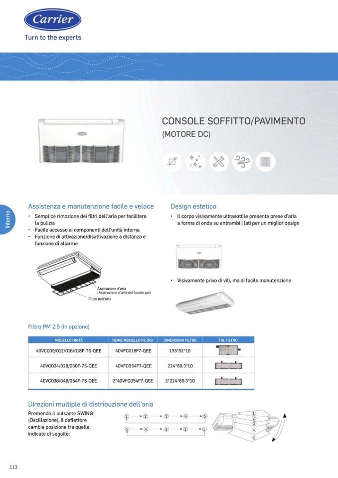 • Facile accesso ai componenti dell'unità interna