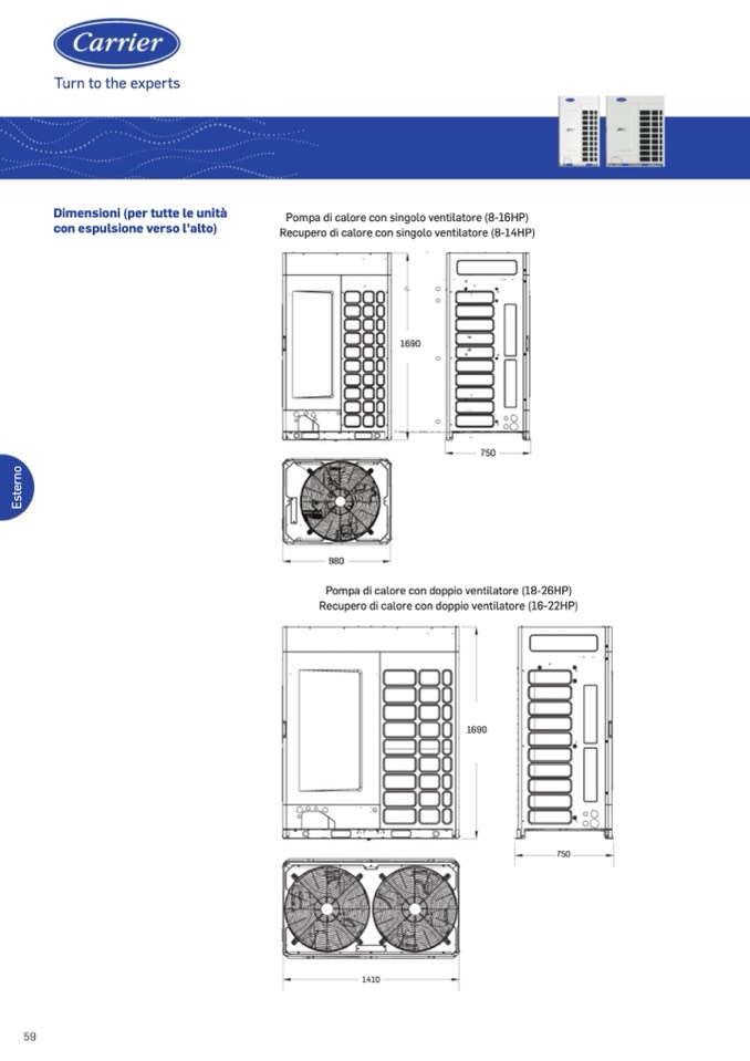 Pompa di calore con doppio ventilatore (18-26HP)