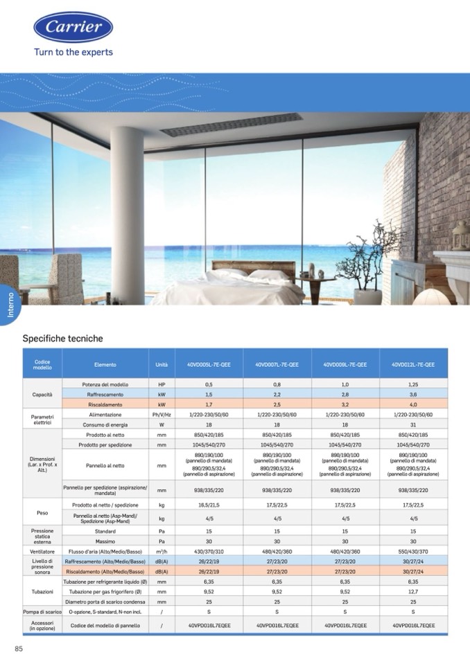 O-opzione, S-standard, N-non incl.