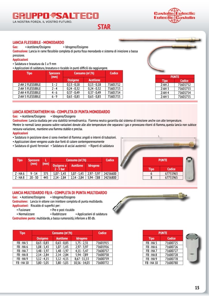 Gas: • Acetilene/Ossigeno • Idrogeno/Ossigeno